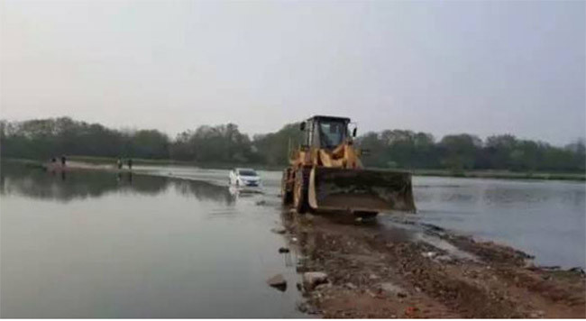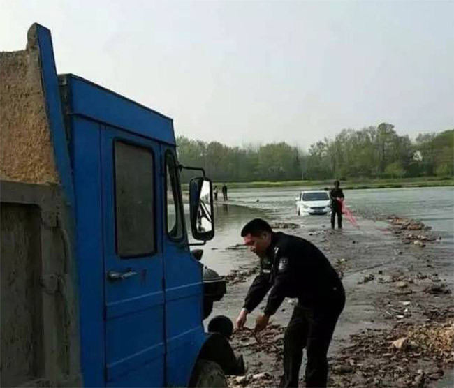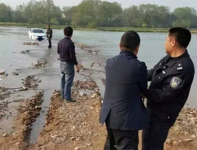 Ngày 1/4, cảnh sát An Huy nhận được một cuộc gọi thông báo một chiếc xe hơi bị mắc kẹt ở giữa dòng sông. Họ đã tới và tìm cách giải cứu chiếc xe