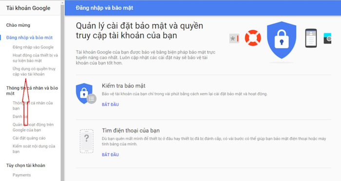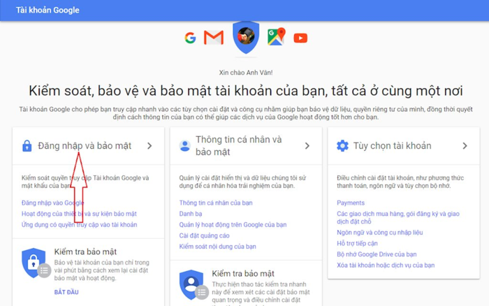 Từ trang chủ Google Account, truy cập mục Đăng nhập và bảo mật: