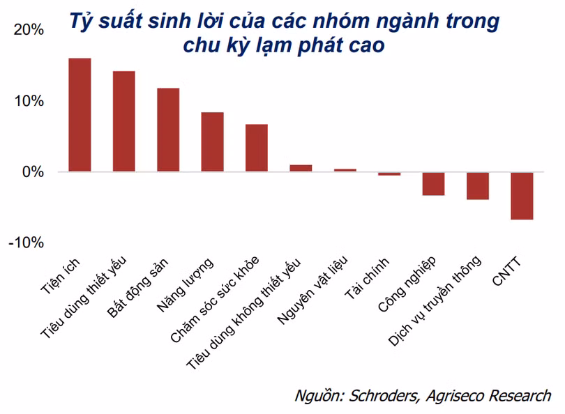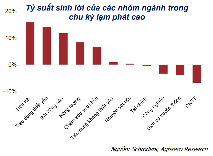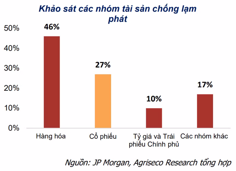 Đáng chú ý, báo cáo của AGR còn dẫn khảo sát của JP Morgan, thể hiện cổ phiếu là nhóm chống lạm phát hiệu quả thứ hai, sau nhóm hàng hoá. Không chỉ JP Morgan, nhiều tổ chức nghiên cứu lớn khác cũng có kết quả tương tự.