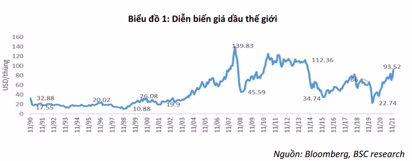 Nếu giá dầu ở vùng giá 80 USD/thùng, BSC dự báo lạm phát của Việt Nam năm 2022 có thể đạt mức 4,5%. Tuy nhiên, nếu giá dầu duy trì trên ngưỡng 100 USD/thùng, công ty chứng khoán này dự báo lạm phát có thể tăng lên mức 5,1%.