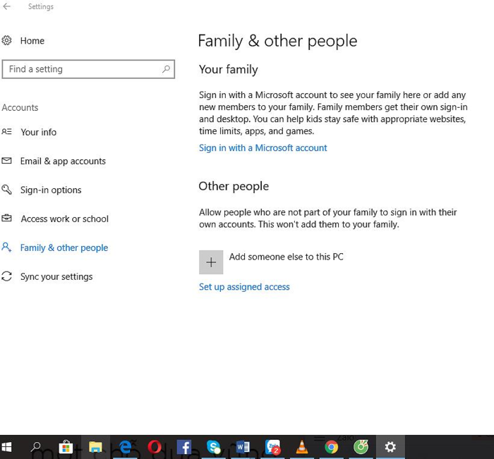 Trước tiên, bạn cần tạo cho trẻ một tài khoản Microsoft riêng. Chọn Start Settings => Accounts => Family & other people => Add a family member.