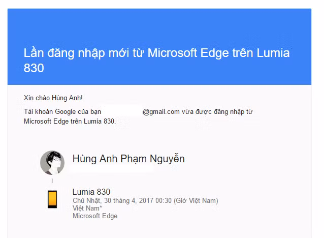 Khi bạn đăng nhập trên một thiết bị, vị trí khác so với trình duyệt, máy tính thường sử dụng. Google sẽ gửi một email thông báo đến địa chỉ hay số điện thoại phục hồi. Trong email sẽ gửi thông tin thiết bị, địa chỉ IP truy cập. Nếu không phải là bạn thì cần thay đổi mật khẩu và tăng cường bảo mật 2 lớp cho Gmail ngay.