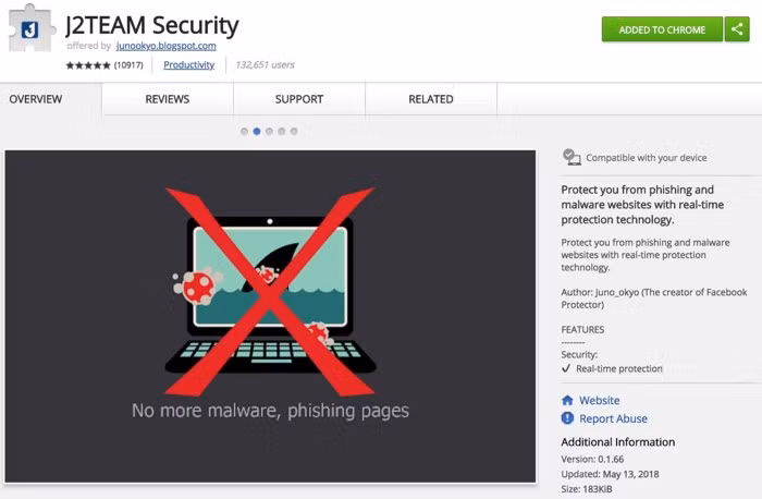 Đầu tiên, bạn hãy tải và cài đặt tiện ích J2TEAM Security tại địa chỉ http://bit.ly/2jYkObG, nhấn Add to Chrome (thêm vào Chrome) > Add extension (thêm tiện ích). Tiện ích này tương thích với Google Chrome, Cốc Cốc, Opera, Yandex… hoặc các trình duyệt sử dụng mã nguồn mở Chromium.
