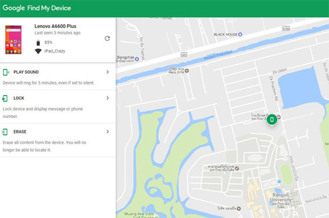 Nếu bạn không thể tìm thấy điện thoại, bạn luôn có thể xóa dữ liệu để ngăn thông tin nhạy cảm rơi vào tay kẻ xấu. Tuy nhiên, thiết bị của bạn sẽ cần kết nối internet. Trong Android 5.0 Lollipop, Google cũng giới thiệu phần mềm Factory Reset Protection (FRP). Nó được thiết kế để ngăn chặn những kẻ trộm có thể lấy cắp điện thoại của bạn, xóa dữ liệu để sử dụng lại hoặc bán nó. Nếu bạn khôi phục cài đặt gốc cho điện thoại bằng FRP và thử thiết lập thiết bị mới, bạn sẽ được nhắc nhập tên người dùng và mật khẩu cho tài khoản Google cuối cùng đã được đăng ký trên thiết bị và nếu không thể đăng nhập, điện thoại sẽ vẫn bị khóa.
