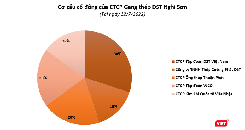 Theo tìm hiểu của VietTimes, DST Nghi Sơn thành lập vào tháng 7/2022 với vốn điều lệ 1.000 tỉ đồng, cơ cấu cổ đông bao gồm: CTCP Tập đoàn DST Việt Nam (30% VĐL), Công ty TNHH Thép Cường Phát DST (15% VĐL), CTCP Ống thép Thuận Phát (20% VĐL), CTCP Tập đoàn VJCO (20% VĐL), CTCP Kim khí Quốc tế Việt Nhật (15% VĐL).