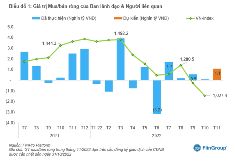 Như vậy, tổng giá trị mua ròng từ cổ đông nội bộ dự kiến trong tháng 11/2022 là 2.300 tỉ đồng.