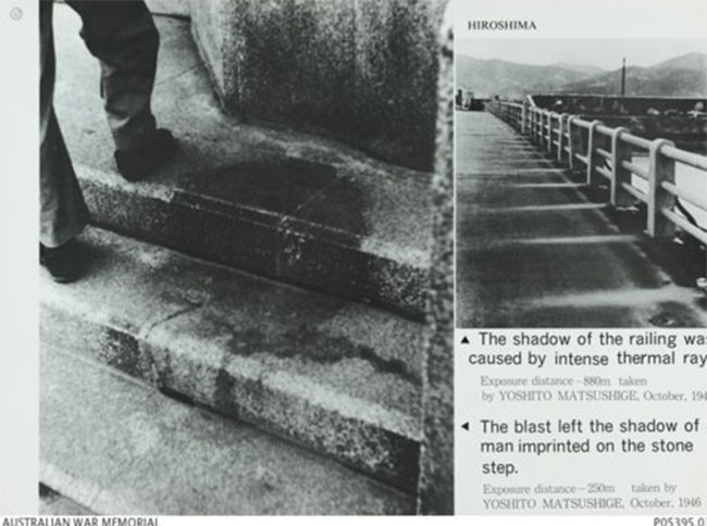 Khi quả bom nguyên tử rơi xuống Hiroshima, Nhật Bản, vào ngày 6 tháng 8 năm 1945, nó đã đốt cháy con người nhanh đến mức "bóng" của họ bị in lại trên mặt đất.