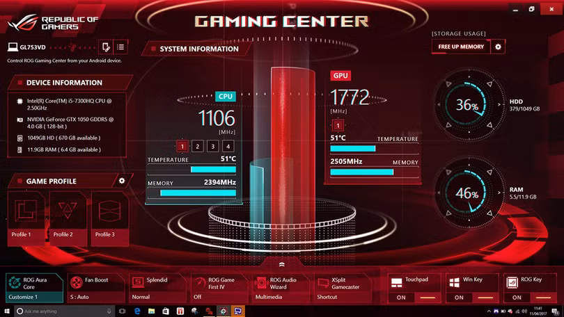 ASUS cũng cho biết GL 553 được trang bị riêng một phần mềm có thể tăng giảm tốc độ quạt tản nhiệt theo ý muốn, cũng như điều chỉnh các thông số về nhiệt độ giúp cho máy luôn trong nhiệt độ cho phép. Đây chính là câu trả lời cho thắc mắc về tại sao ASUS lại chỉ dùng một quạt tản nhiệt và hai ống đồng cho hệ thống tản nhiệt của GL 553.