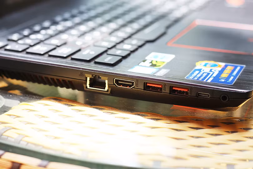 Cạnh trái của máy có khe cắm dây mạng, HDMI, 2 cổng USB 3.0, một cổng USB-C và giắc cắm tai nghe 3,5mm.