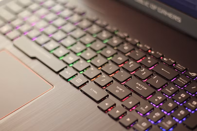 Bàn phím của máy là một sự cải tiến lớn so với dòng laptop tiền nhiệm khi được tích hợp đèn nền RGB. Bàn phím này có 4 vùng màu. Có thể tùy chỉnh màu sắc trên các vùng màu bàn phím nhờ vào phần mềm cài trong máy. Hành trình phím dài với 2,5 mm, so với dòng máy tiền nhiệm là 1,8 mm, giúp cho game thủ có cảm giác như gõ bàn phím cơ. Thiết kế phím bấm rộng rãi, thoải mái.