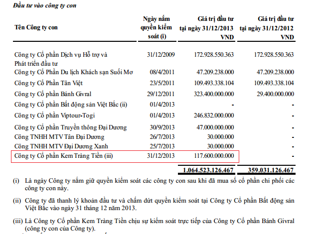 Phải đến ngày 31/12/2013, tức là hơn 3 năm sau hợp đồng chuyển nhượng cổ phần, Kem Tràng Tiền mới chính thức được ghi nhận là “công ty con” của OCH với tỷ lệ sở hữu là 78,4%.