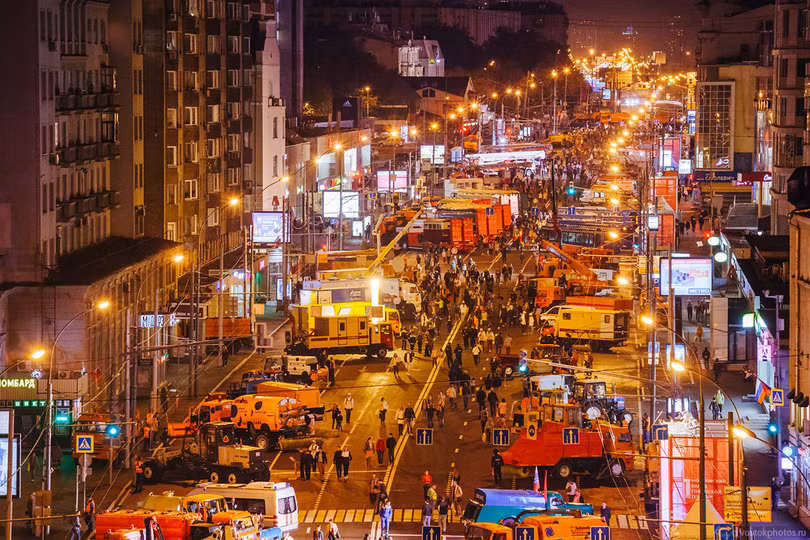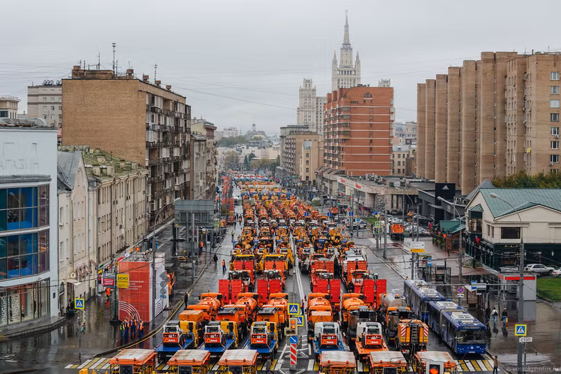 VietTimes - Ngày 11.09 Lần đầu tiên tại thủ đô Moscow tổ chức lễ diễu hành phương tiện kỹ thuật dịch vụ hạ tầng, lập kỷ lục Guinness cuộc diễu hành lớn các phương tiện kỹ thuật. Trên đường vành đai Garden Ring là xe làm đường, dịch vụ cộng đồng, xe cứu thương, cảnh sát và xe Bộ tình trạng khẩn cấp.