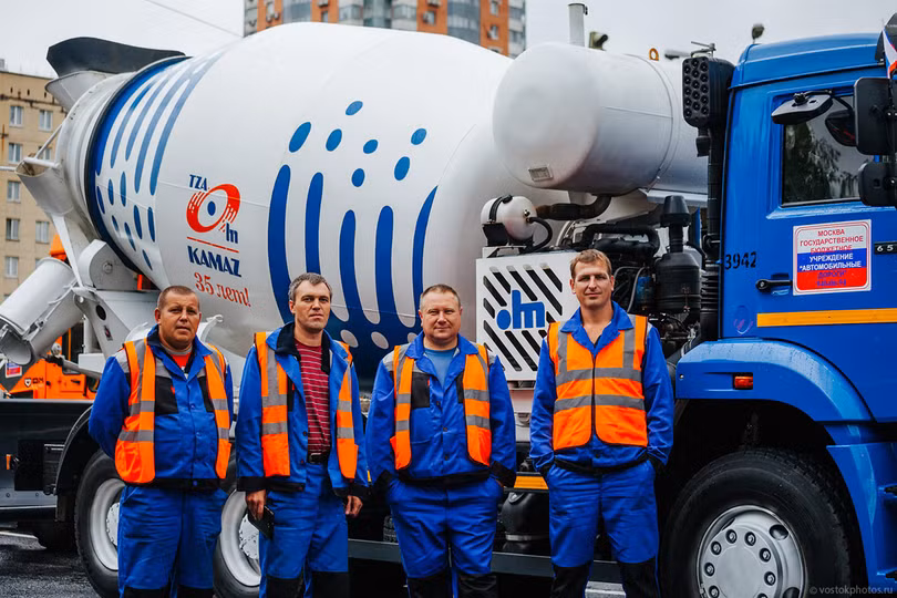 Chụp ảnh kỷ niệm của kíp xe đổ bê tông tươi