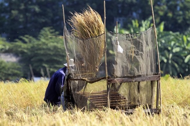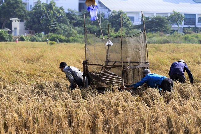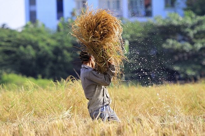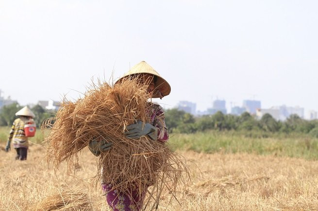 Hai mươi sáu tết, khi đa số người Sài Gòn bắt đầu kết thúc công việc của mình để chuẩn bị đón một năm mới sắp đến - người thì đi mua sắm, người thì tranh thủ thời gian rảnh đi chụp hình lưu niệm trong không khí xuân trên khắp các nẻo đường Sài Gòn - thì ở một số cánh đồng lúa ngoại thành vẫn còn rất nhiều người dân nghèo từ miền Tây lên Sài Gòn gặt lúa thuê kiếm thêm tiền về sắm tết. Tại cánh đồng lúa thuộc phường Thạnh Mỹ Lợi, Quận 2, vài chục người vẫn đang tất bật với công việc cắt, gom, tuốt, chuyển lúa.