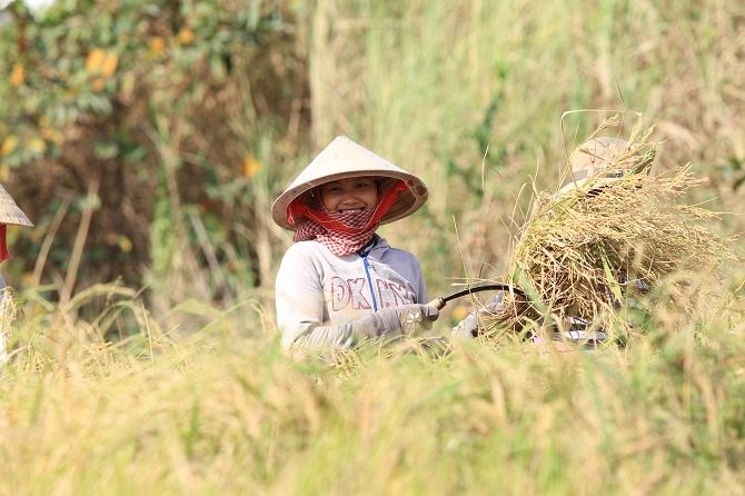 “Năm nào cũng vậy, cứ cuối năm là những gia đình nghèo ở Sóc Trăng lại khăn gói lên Sài Gòn gặt lúa thuê, lâu rồi thành quen, và xem tiền công của đợt đi làm cuối năm này là số tiền cho việc sắm sửa tết của một năm”, chị Thạch Thị Xuân Oanh, một người cắt lúa trên cách đồng tại Quận 2 chia sẻ. Chi Oanh cho hay, phụ nữ nếu cắt một ngày được trả khoảng 180 ngàn tiền công, mọi sinh hoạt, cơm nước do mình tự lo. Còn phái nam chịu trách nhiệm gom lúa lại, đứng máy tuốt, chuyển lúa lên xe, đưa về nhà cho chủ lúa, công việc nặng nhọc hơn nên được trả 200 ngàn một ngày công.