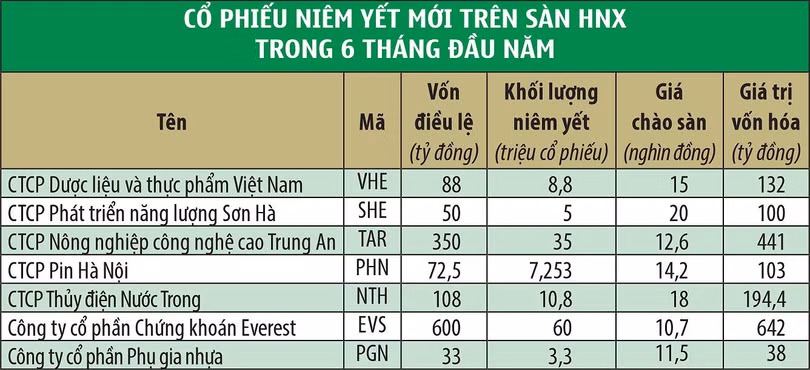 Lũy kế 6 tháng đầu năm, sàn HNX chào đón 8 doanh nghiệp mới và “chia tay” với 16 doanh nghiệp.