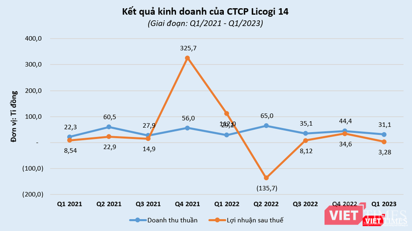 Trừ đi các chi phí khác, kết thúc quý 1/2023, lợi nhuận sau thuế của L14 đạt 3,2 tỉ đồng, giảm 63,8% so với thực hiện quý 1/2022.