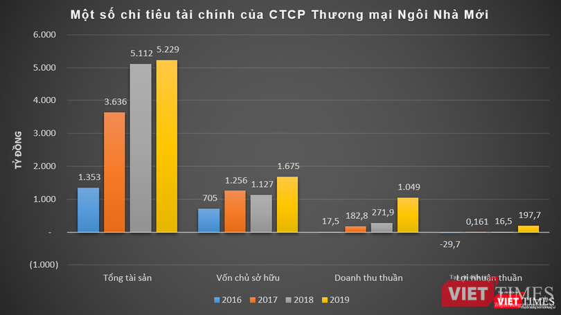 Dữ liệu của VietTimes cho thấy, trong giai đoạn 2016 - 2019, quy mô tổng tài sản của Ngôi Nhà Mới tăng trưởng khá mạnh. Tại ngày 31/12/2019, tổng tài sản của Ngôi Nhà Mới đạt mức 5.229 tỉ đồng, tăng 3,8 lần so với cuối năm 2016; vốn chủ sở hữu cũng gia tăng nhanh chóng, đạt mức 1.675,3 tỉ đồng.