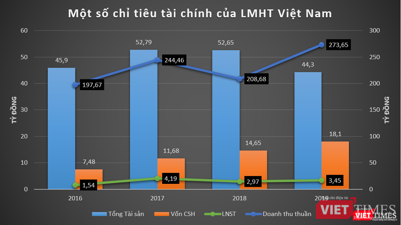 Tính đến cuối năm ngoái, tổng tài sản của LMHT Việt Nam chỉ đạt 44,3 tỷ đồng, giảm 15,8% so với thời điểm đầu năm; trong khi đó vốn chủ sở hữu tăng nhẹ từ 14,65 tỷ đồng lên đạt 18,1 tỷ đồng.