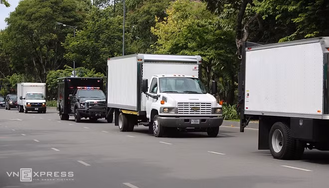Đoàn xe sau khi rời sân bay đã di chuyển về Lãnh sự quán Mỹ tại TP HCM.