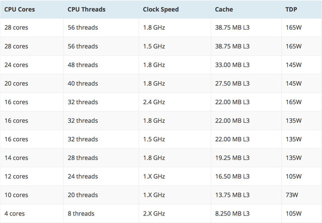Ở các thế hệ Xeon trước, thường Xeon E5 sẽ có ít nhân hơn Xeon E7. Với việc ra mắt E5 32 nhân, chúng ta có thể dự đoán rằng Skylake-EP (Xeon E5) và Skylake-EN (Xeon E7) sẽ có cấu hình số nhân giống nhau.