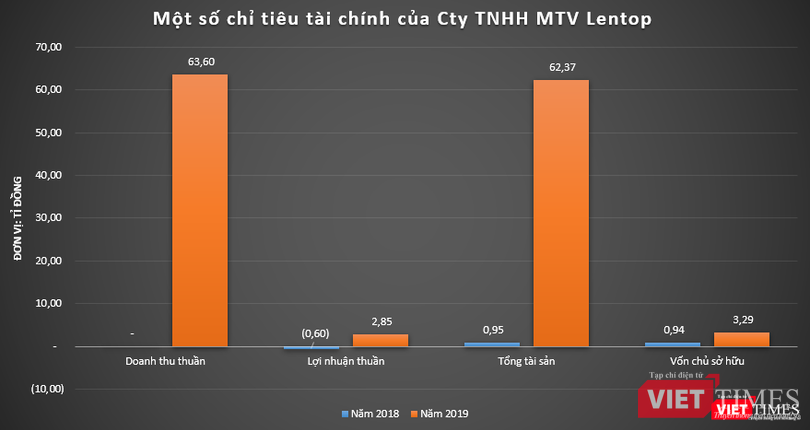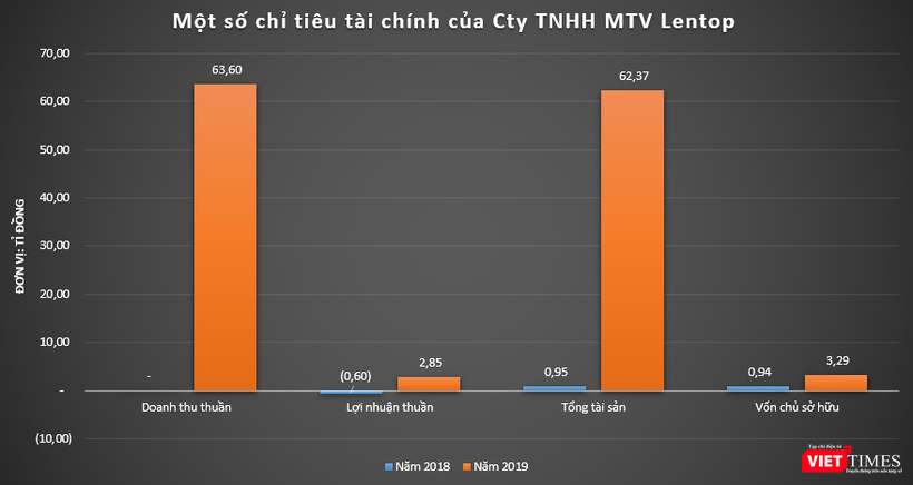 Cụ thể, năm 2018, sau vài tháng hoạt động, Lentop không ghi nhận doanh thu, báo ỗ thuần 0,6 tỉ đồng. Bước sang năm 2019, doanh nghiệp này ghi nhận doanh thu thuần đạt 63,6 tỉ đồng, báo lãi 2,85 tỉ đồng.