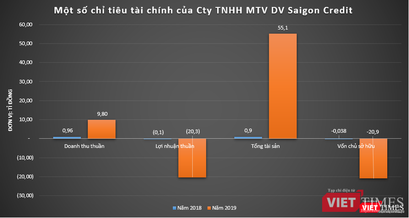 Tìm hiểu của VietTimes cho thấy, khi mới thành lập, Saigon Credit có vốn điều lệ chỉ ở mức 100 triệu đồng. Năm 2018, doanh nghiệp này báo lỗ 140 triệu đồng, âm vốn chủ sở hữu. Tình trạng này gia tăng vào năm 2019, khi doanh nghiệp này báo lỗ 20,3 tỉ đồng, vốn chủ sở hữu âm 20,9 tỉ đồng.