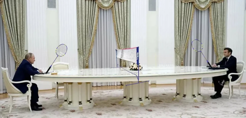 Một số nhà quan sát đã cảm thấy bị sốc trước những bức ảnh chụp hai ông Macron và Putin ngồi ở hai đầu đối diện của chiếc bàn trắng dài khoảng 4 mét để thảo luận về cuộc khủng hoảng Ukraine hôm 7/2. Các nhà ngoại giao cho rằng ông Putin có thể đang muốn gửi một thông điệp ngoại giao gì đó.
