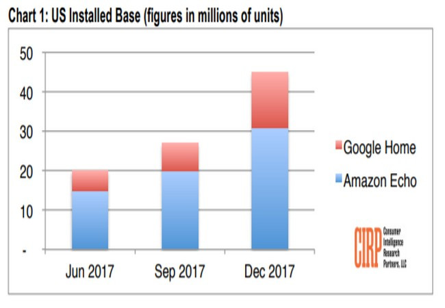 Hôm 26/1, một báo cáo của hãng nghiên cứu thống kê Consumer Intelligence Research Partners (CIRP) cho biết loa Google Home cũng đã có một mùa mua sắm rất thành công. Báo cáo này cho biết người Mỹ đã mua 31 triệu chiếc loa Echo và 14 triệu chiếc loa Google Home trong quý 4/2017. Mặc dù lượng bán loa Echo của Amazon gấp đôi loa Google Home, nhưng báo cáo này cũng chỉ ra rằng lượng bán loa Google Home đã tăng với tốc độ chóng mặt. Trong mùa lễ hội vừa qua, CIRP dự đoán rằng loa Google Home đã chiếm được 40% tổng lượng bán. Giống như Amazon, Google cũng đã công bố lượng bán dòng loa Google Home của họ.