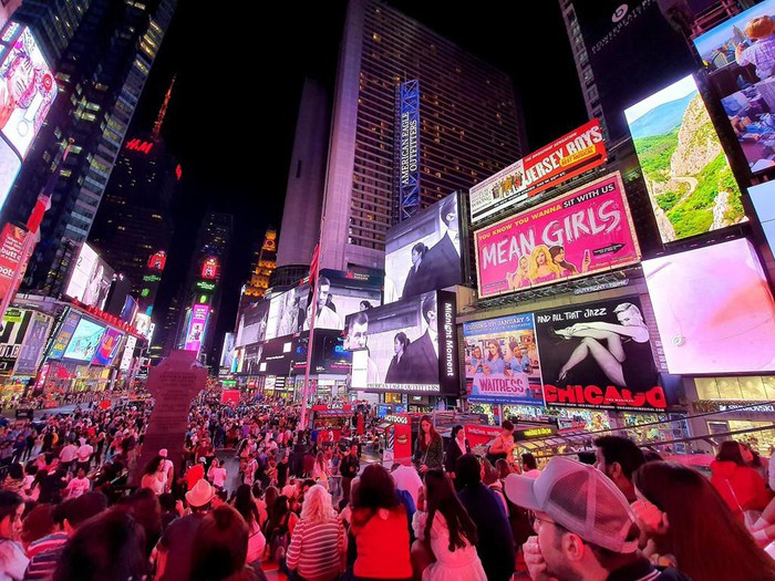 Khi chụp ảnh vào ban đêm, ánh sáng yếu, ảnh trên Galaxy Note10+ cho ra sáng và ít bị nhiễu (noise). Những chi tiết như bảng hiệu quảng cáo ở Times Square vẫn thể hiện đầy đủ các thông tin.
