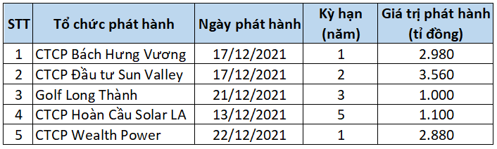 Trong khi đó, ngày 21/12/2021, CTCP Đầu tư và Kinh doanh Golf Long Thành (Golf Long Thành) đã phát hành 1.000 tỉ đồng trái phiếu mã GLTCH2124001, với kỳ hạn 3 năm.