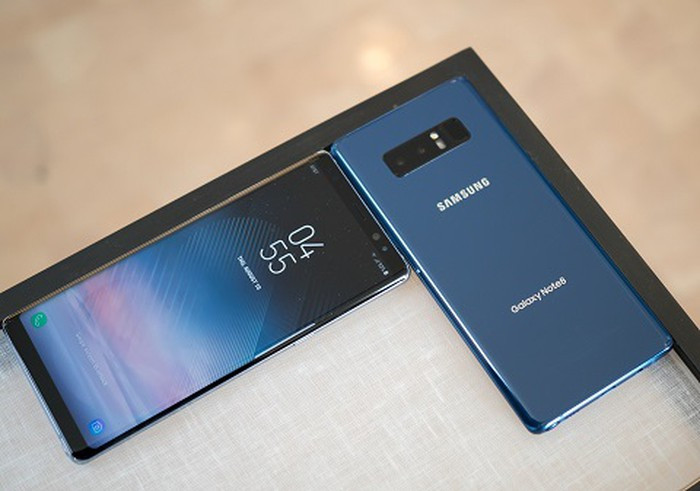 Samsung Galaxy Note 8. Galaxy Note 8 có màn hình lên tới 6.3-inch, cả mặt trước và mặt sau máy đều được phủ kín bằng lớp kính phản chiếu rất đẹp. Máy được cài sẵn hệ điều hành Android Nougat đi kèm với giao diện Samsung Experience, đi kèm cấu hình khủng long Exynos 8895 8 nhân và RAM 6 GB.