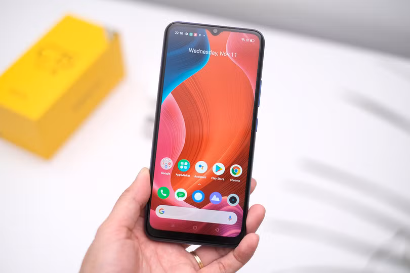 Smartphone giá rẻ của Realme có thiết kế vỏ nhựa nguyên khối cứng cáp và chắc chắn. Mặt trước là màn hình "giọt nước" với phần viền máy khá dày, nhất là viền dưới. Với giá bán 4,2 triệu đồng, máy được trang bị màn hình 6,5 inch độ phân giải HD+, chip Snapdragon 460, RAM 4 GB và bộ nhớ trong 64 GB. Pin của máy có dung lượng 6.000 mAh, cao nhất phân khúc.