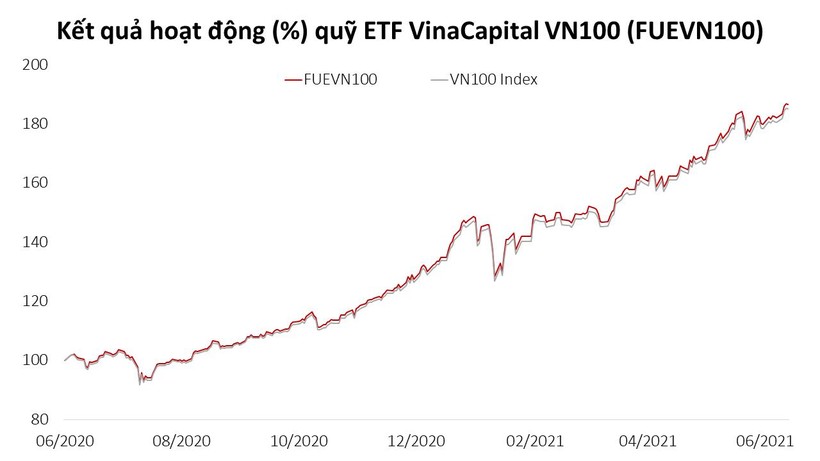 Quỹ ETF VinaCapital VN100 được thành lập vào ngày 16/6/2020, danh mục mô phỏng theo chỉ số tham chiếu VN100, bao gồm 100 mã cổ phiếu đầu ngành niêm yết tại Sở giao dịch Chứng khoán Thành phố Hồ Chí Minh (HOSE). Nhà đầu tư có thể đầu tư, giao dịch mua bán chứng chỉ quỹ ETF VinaCapital VN100 bất cứ lúc nào trên sàn HOSE với mã chứng khoán là FUEVN100.
