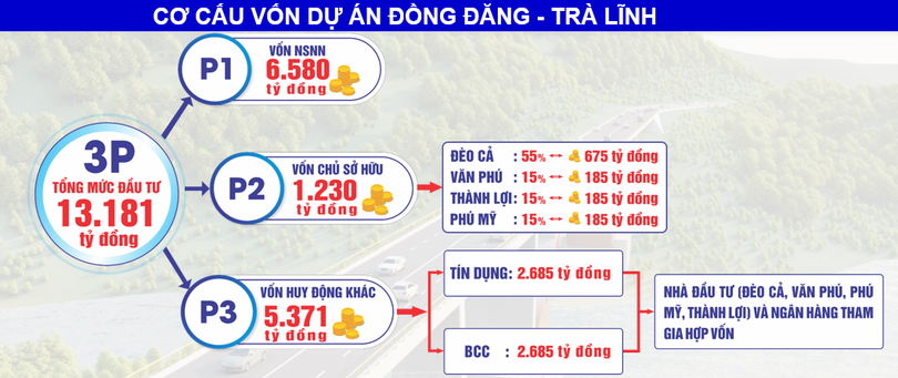 Dự án cao tốc Đồng Đăng – Trà Lĩnh được thực hiện theo hình thức đối tác công tư (PPP), tổng mức đầu tư giai đoạn 1 (2021 – 2025) là 13.181 tỉ đồng./.
