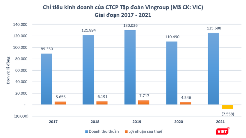 Thông tin này được tiết lộ trong báo cáo tài chính hợp nhất năm 2021 đã kiểm toán mà CTCP Tập đoàn Vingroup (Mã CK: VIC) vừa công bố.