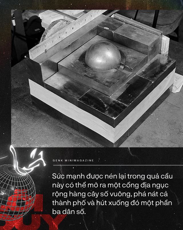 Tại Mỹ, một tổ hợp "Fat Man" thứ hai đang chờ được nạp "lõi quỷ". Khối vật chất phóng xạ nặng 6,2 kg này chính là trái tim đem lại sức công phá hủy diệt cho nó.