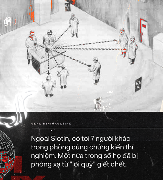 Raemer Schreiber, một nhà khoa học đứng cùng Slotin trong phòng để chứng kiến thí nghiệm mô tả lại khoảnh khắc ấy. Ngay sau khi nghe thấy tiếng vòm beryllium sập lại, anh cảm thấy một luồng khí nóng tạt vào mình và nhìn thấy một luồng ánh sáng xanh lóe lên.