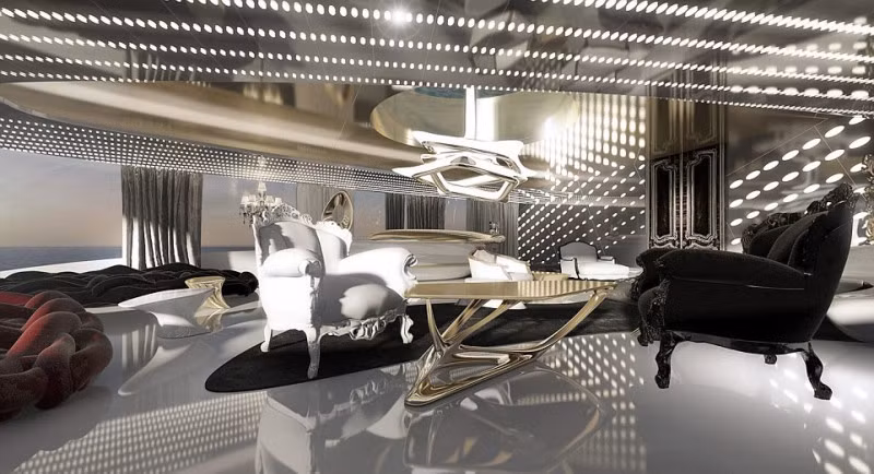 Chủ sở hữu du thuyền sẽ cảm thấy mình đang ở trong biệt thự cá nhân. Trong tầm tay là câu lạc bộ hai tầng với hai rạp chiếu phim, phòng tập thể dục, garar, xuồng bơm hơi, mô tô nước và thậm chí là máy bay trực thăng.