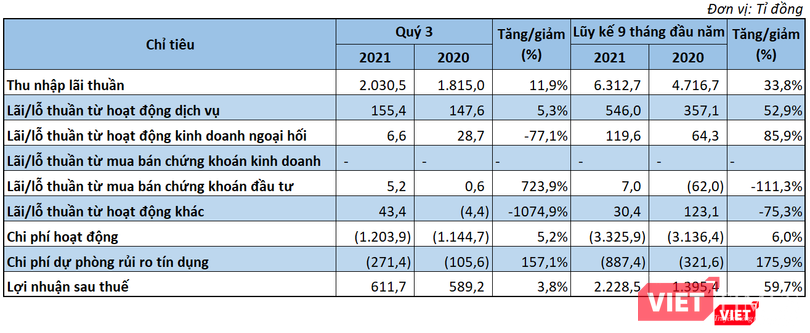 Lũy kế 9 tháng đầu năm, LPB ghi nhận lợi nhuận sau thuế đạt 2.228,5 tỉ đồng, tăng 59,7% so với cùng kỳ. Riêng quý 3/2021, nhà băng này báo lãi sau thuế 611,7 tỉ đồng, tăng 3,8% so với cùng kỳ năm 2020.