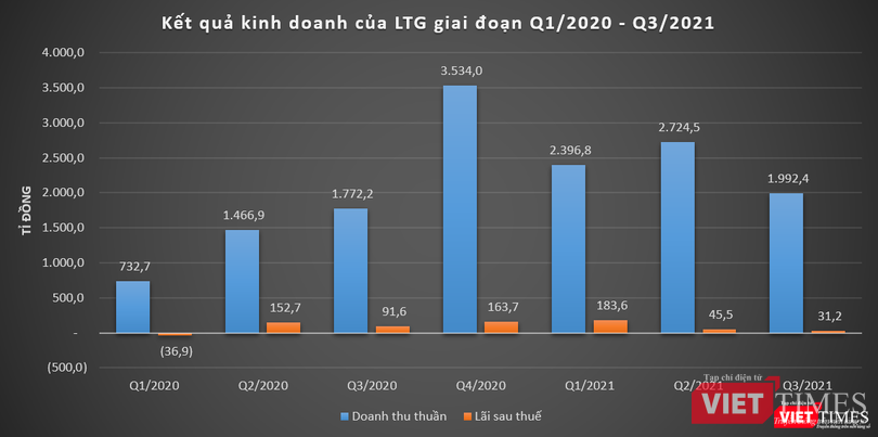 Trong kỳ, chi phí hoạt động và chi phí tài chính của LTG đều tăng nên lợi nhuận sau thuế quý 3/2021 chỉ đạt 31,2 tỉ đồng, giảm 66% so với cùng kỳ năm 2020.