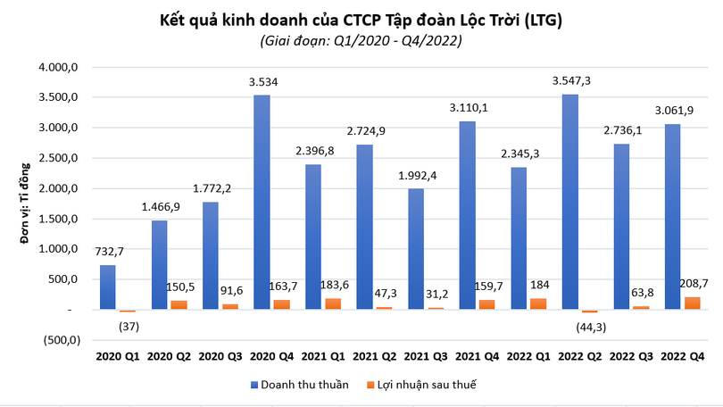 Kết quả, LTG báo lãi sau thuế quý 4/2022 đạt 208,7 tỉ đồng, tăng trưởng 33,3% so với cùng kỳ năm trước.