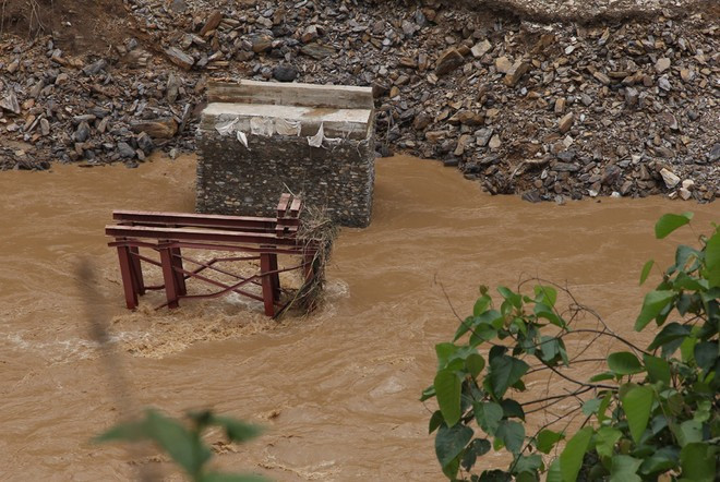 "9h sáng, nước lũ ngầu đục, cây cầu rung lên bần bật. Nhiều người la hét đu người cố giằng kéo sợi dây cáp nhằm cứu khối tài sản lớn nhưng mọi nỗ lực đều bất thành", một người dân địa phương cho hay.
