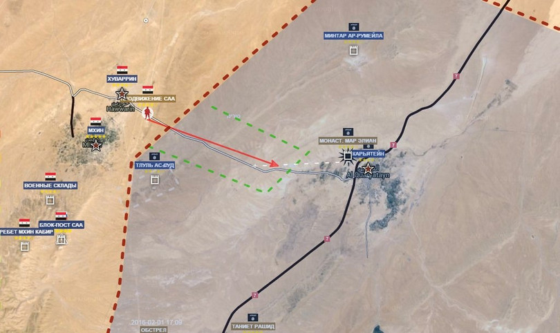 Theo phóng viên chiến trường Arab Source đang có mặt ở phía đông nam tỉnh Homs. Lữ đoàn số 120 và đồng minh đã giành được cao điểm then chốt Taloul Al-Sid thuộc dãy núi Al-Hazzm (Jabal Al-Hazzm), đầy lùi các phần tử khủng bố IS về cửa ngõ phía tây thành phố Quraytayn, IS tháo chạy hỗn loạn tránh bị các binh sĩ Syria truy đuổi tiêu diệt.