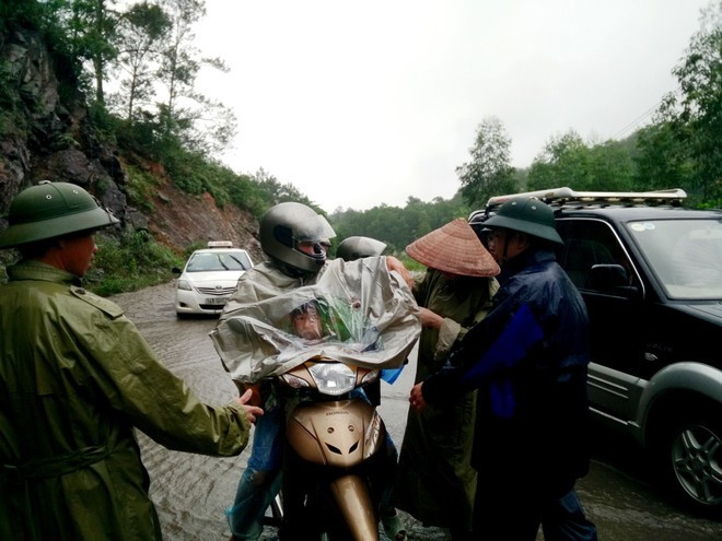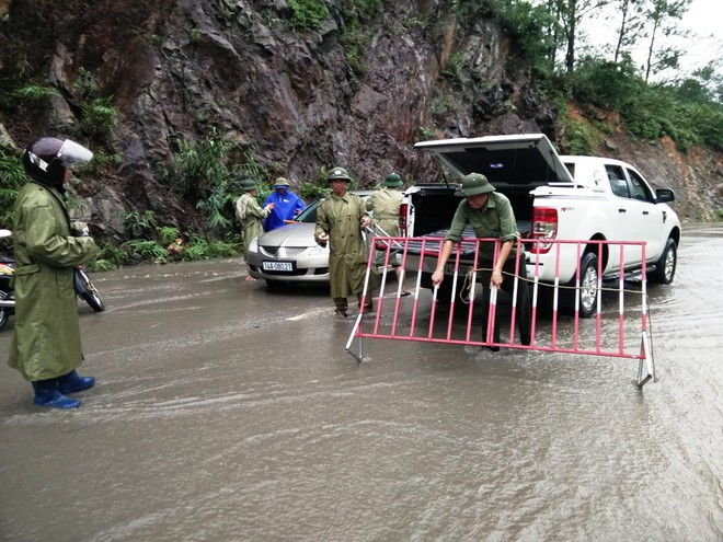 Đến 16h ngày 2/8, khi lũ giảm cường độ, một số ôtô mới có thể qua lại km5 Yên Tử.