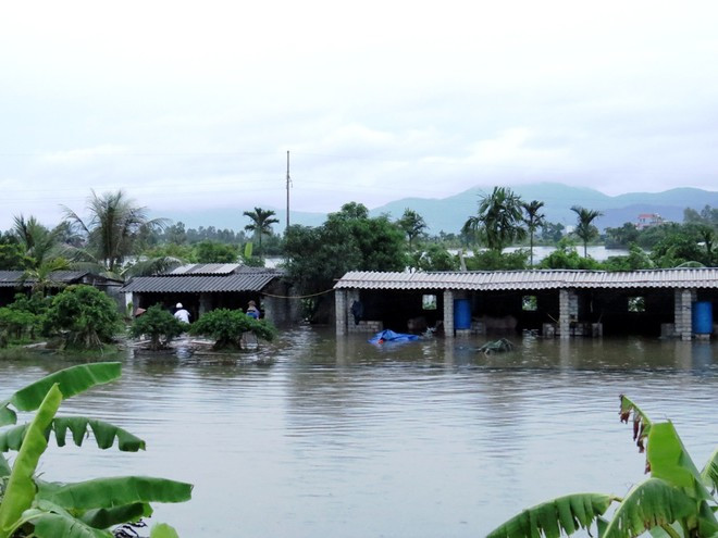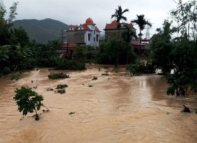 Dòng nước đỏ tàn phá ruộng vườn, cuốn trôi hoa màu, cây cối...