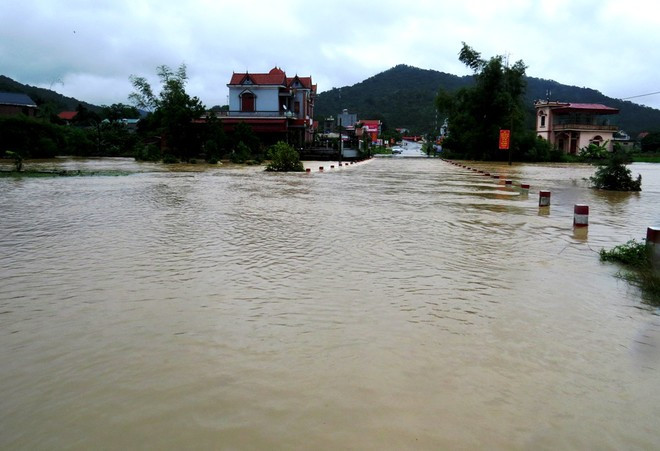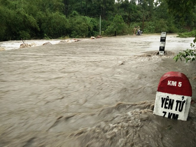 Đường dẫn vào Khu di tích lịch sử Yên Tử biến thành biển nước, cô lập với bên ngoài.