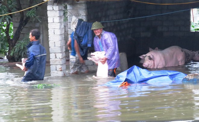 * Người dân di tản gia súc tránh lũ