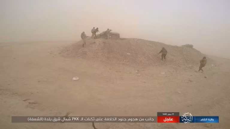 Lực lượng khủng bố IS bất ngờ tấn công, SDF đại bại. Ảnh: trang Amaq.
