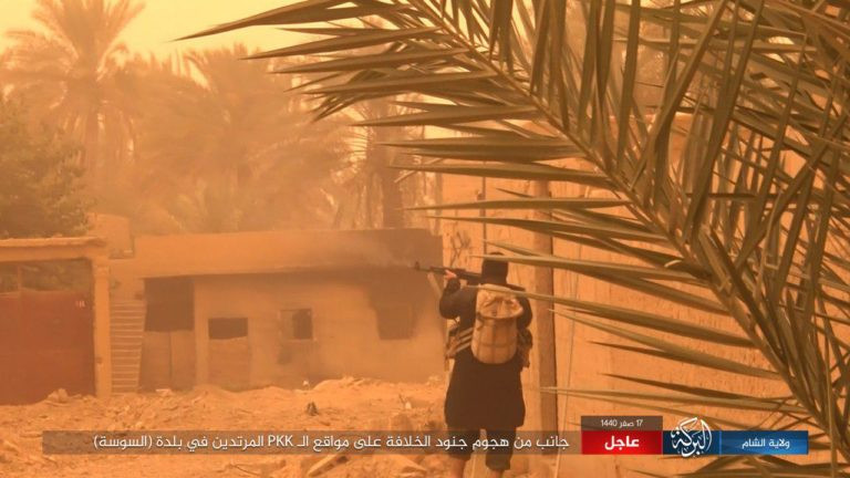 Theo Amaq, cơ quan truyền thông của IS, các tay súng khủng bố tiến hành cuộc tấn công quy mô lớn đánh vào các trận địa của SDF tại hai thị trấn nhỏ al-Susah và al-Baghuz al-Fawqani. IS cũng triển khai phản công đánh vào nhiều trận địa khác của lực lượng SDF được Mỹ hậu thuẫn xung quanh thị trấn Hajin và al-Shaafah.